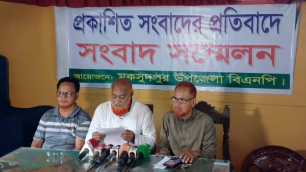 মুকসুদপুরে বিএনপির কেন্দ্রীয় নেতা সহ উপজেলা নেতৃবৃন্দদের জড়িয়ে প্রকাশিত মিথ্যা ও ভিত্তিহীন সংবাদের প্রতিবাদে সংবাদ সম্মেলন অনুষ্ঠিত