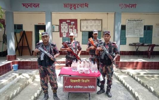সাতক্ষীরা ও কলারোয়া সীমান্তে মাদক বিরোধী অভিযানে ২০ বোতল ভারতীয় মদসহ প্রায় আট লক্ষ টাকার ভারতীয় মালামাল জব্দ করেছে বিজিবি