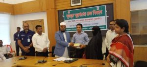 তারপরে জেলা প্রশাসক উপজেলা পরিষদের হলরুমে প্রধান অতিথি হিসেবে উপস্থিত থেকে কোটালীপাড়া উপজেলায় দরিদ্র, অসহায় ও পিছিয়ে পড়া জনগোষ্ঠীর আর্থ সামাজিক জীবন মানোন্নয়নে ৪৫ জনের মাঝে মোট ২১লক্ষ ৫০ হাজার টাকার সুদমুক্ত ক্ষুদ্রঋণের চেক বিতরণ করেন।