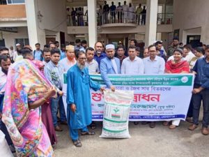 বিনা মূল্যে মাসকলাই ডাল, পাটের বীজ, সার ও লেবুর চারা বিতরণ করেন।